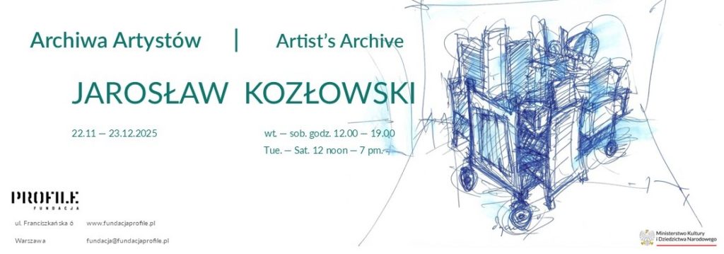Archiwa artystów to projekt prezentacji sztuki, którego celem jest odkrywanie mało znanych obszarów współczesnych praktyk artystycznych. Pierwsza edycja programu poświęcona jest kluczowej postaci neoawangardowej sceny artystycznej, jednemu z czołowych twórców sztuki konceptualnej – Jarosławowi Kozłowskiemu.
